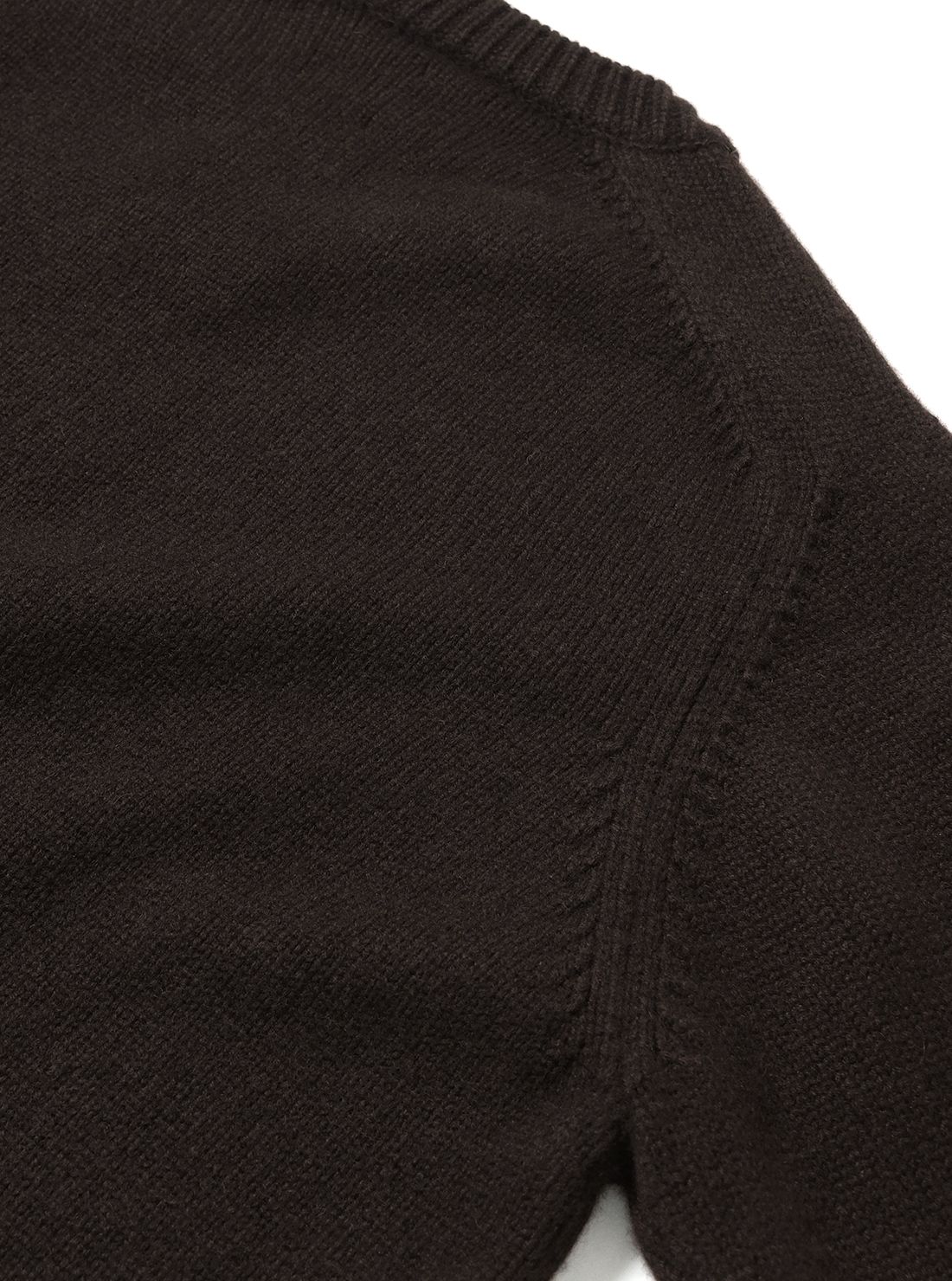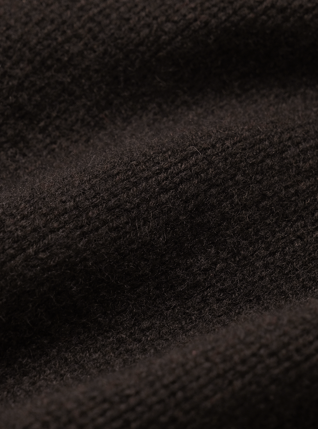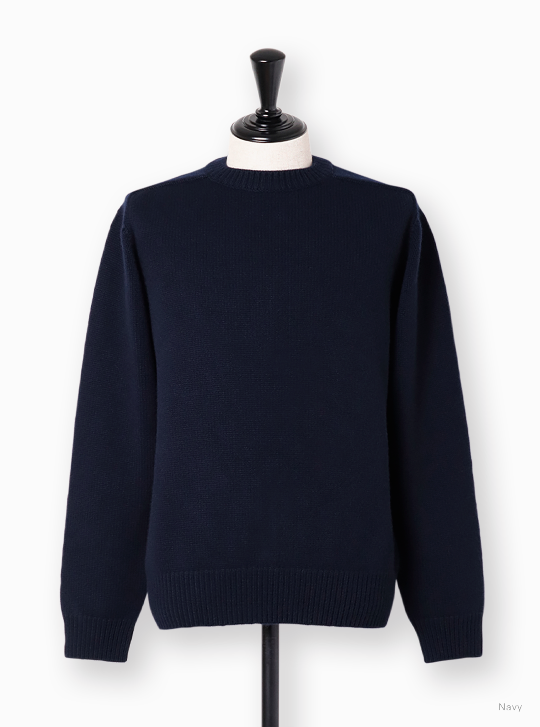最高級のイノセントカシミヤを多本取りし、ローゲージで可能な限り度目を詰め高密度で編み立て。後工程でゆっくりと時間をかけてカシミヤ本来の風合いを引き出すことでハリコシがありながら滑らかで