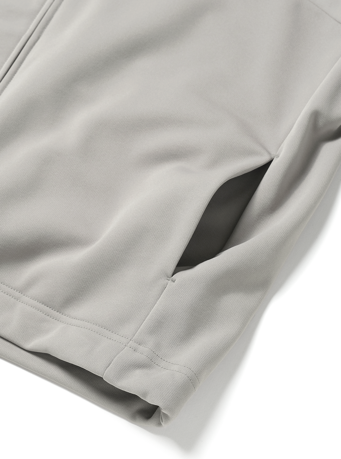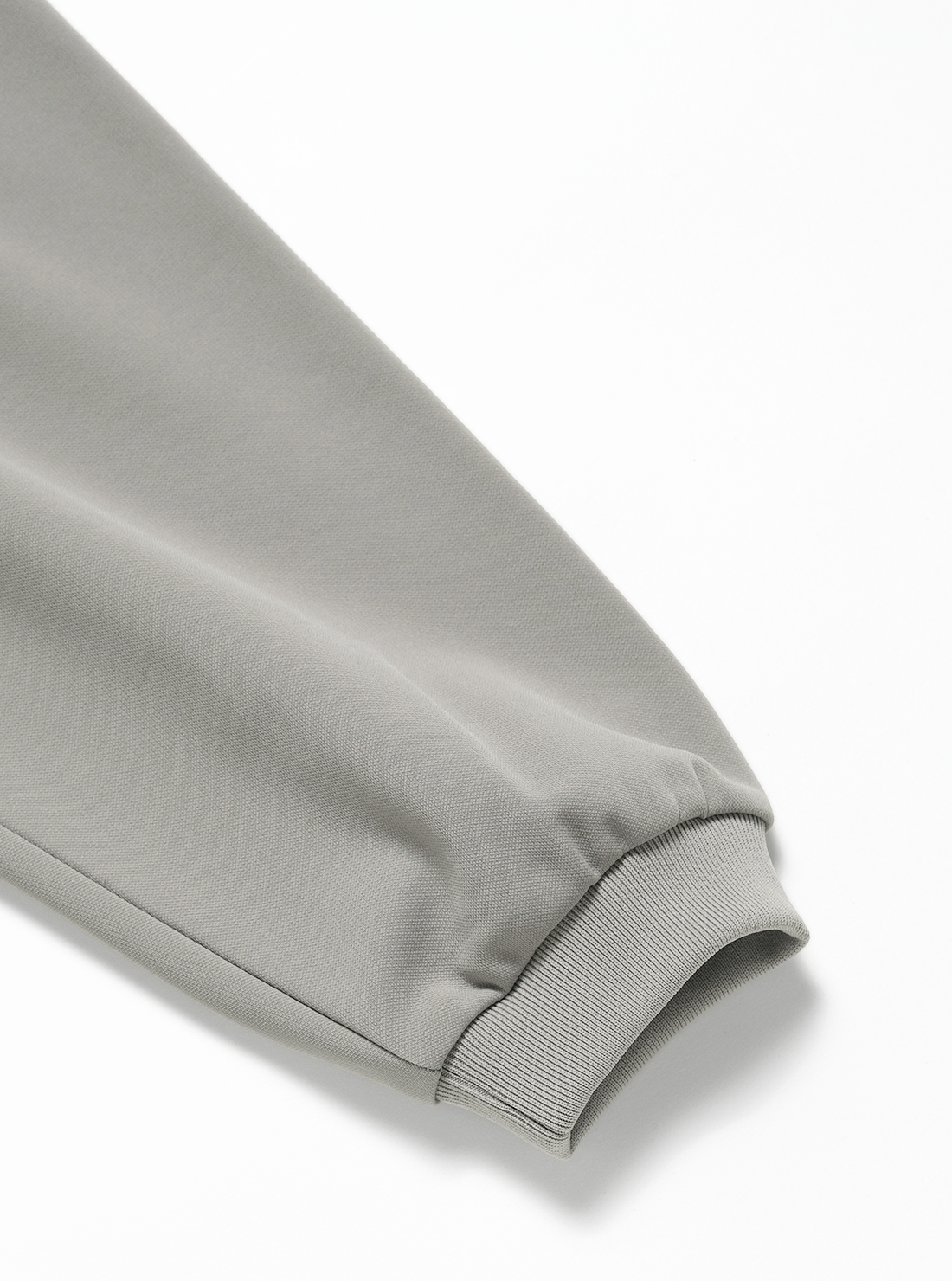 体操着などで採用されていた編機を使い、表面に強撚のポリエステル、裏面にスヴィンコットンを使用したダブルフェイスの生地で製作した商品。ジャージ素材でありながら美しい表面と滑らかな肌触りを実現し、ハリとつやのある仕上がりが特徴。