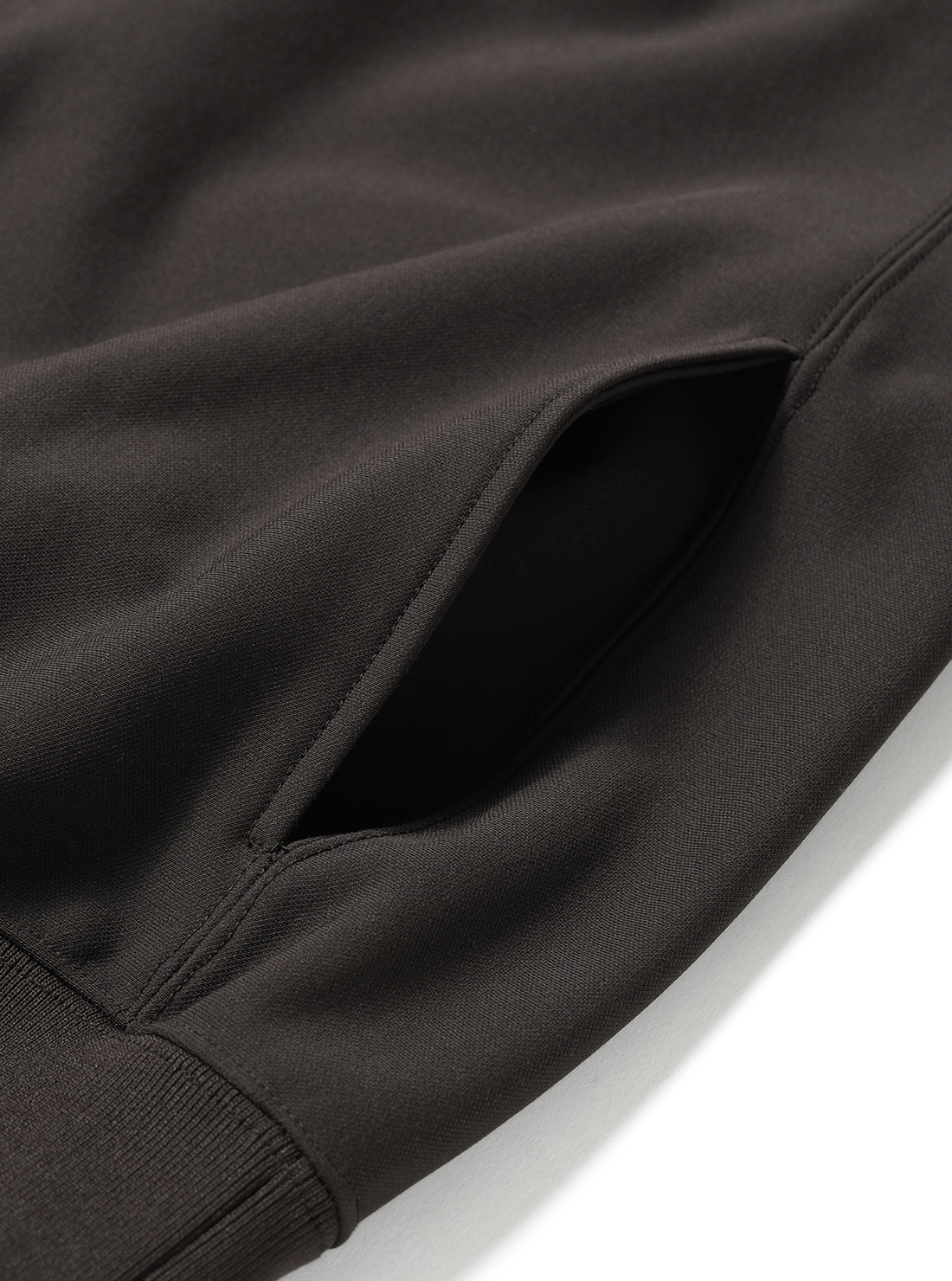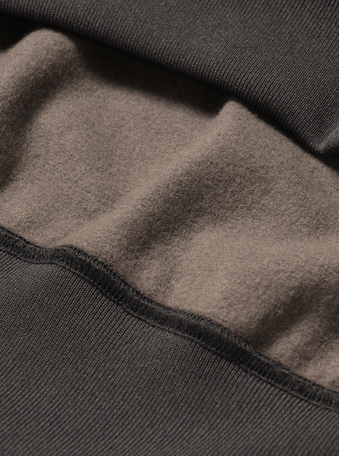 体操着などで採用されていた編機を使い、表面に強撚のポリエステル、裏面にスヴィンコットンを使用したダブルフェイスの生地で製作した商品。ジャージ素材でありながら美しい表面と滑らかな肌触りを実現し、ハリとつやのある仕上がりが特徴。