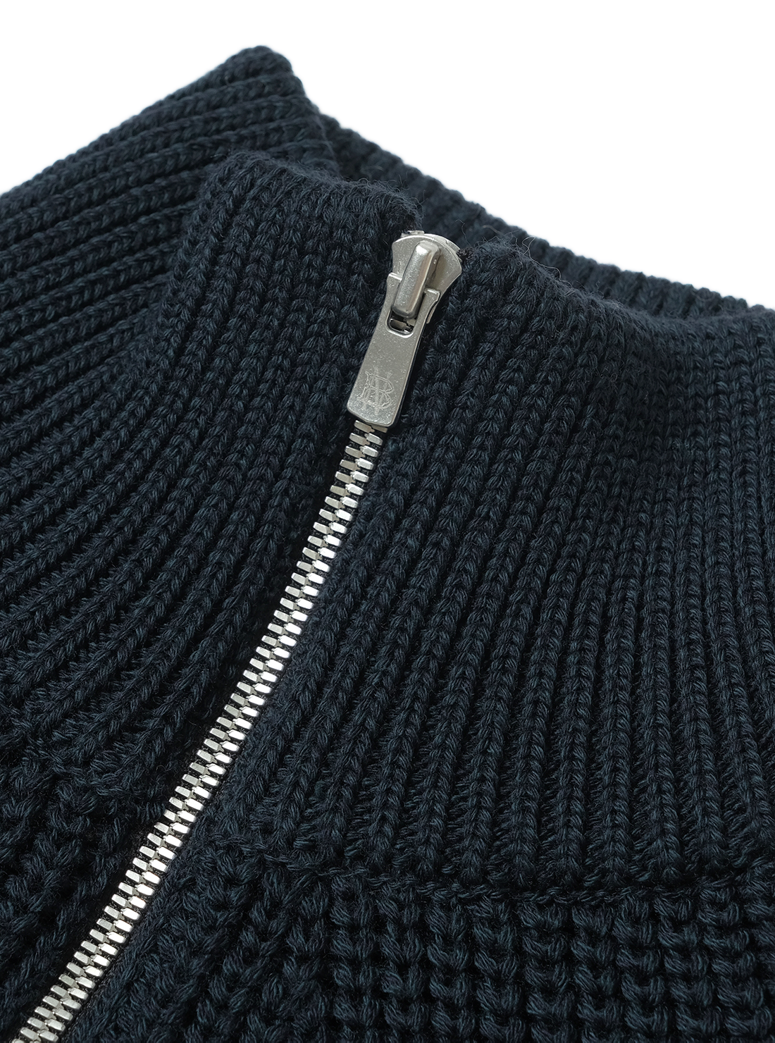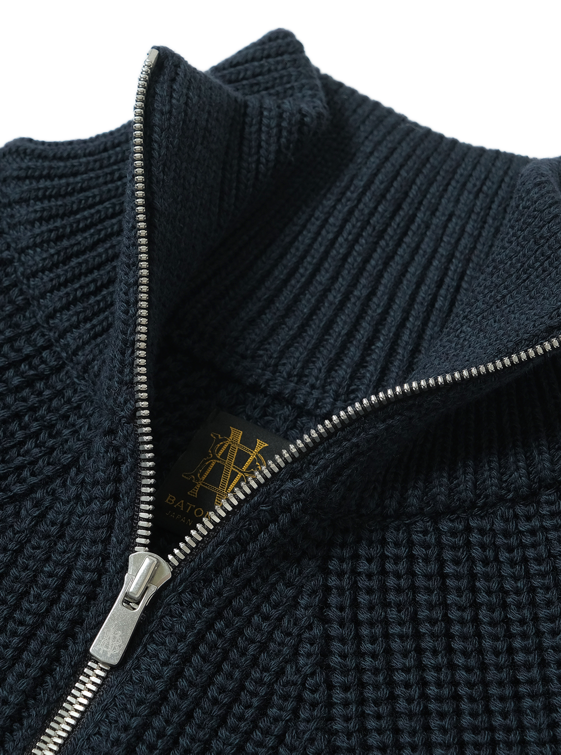 SIGNATUREシリーズの為に開発したSOLIDWOOLという糸を使用。ダレにくく、毛玉になりにくい商品で編み目の立体感が特徴。BATONERらしい象徴的な編み柄が際立つ商品。
