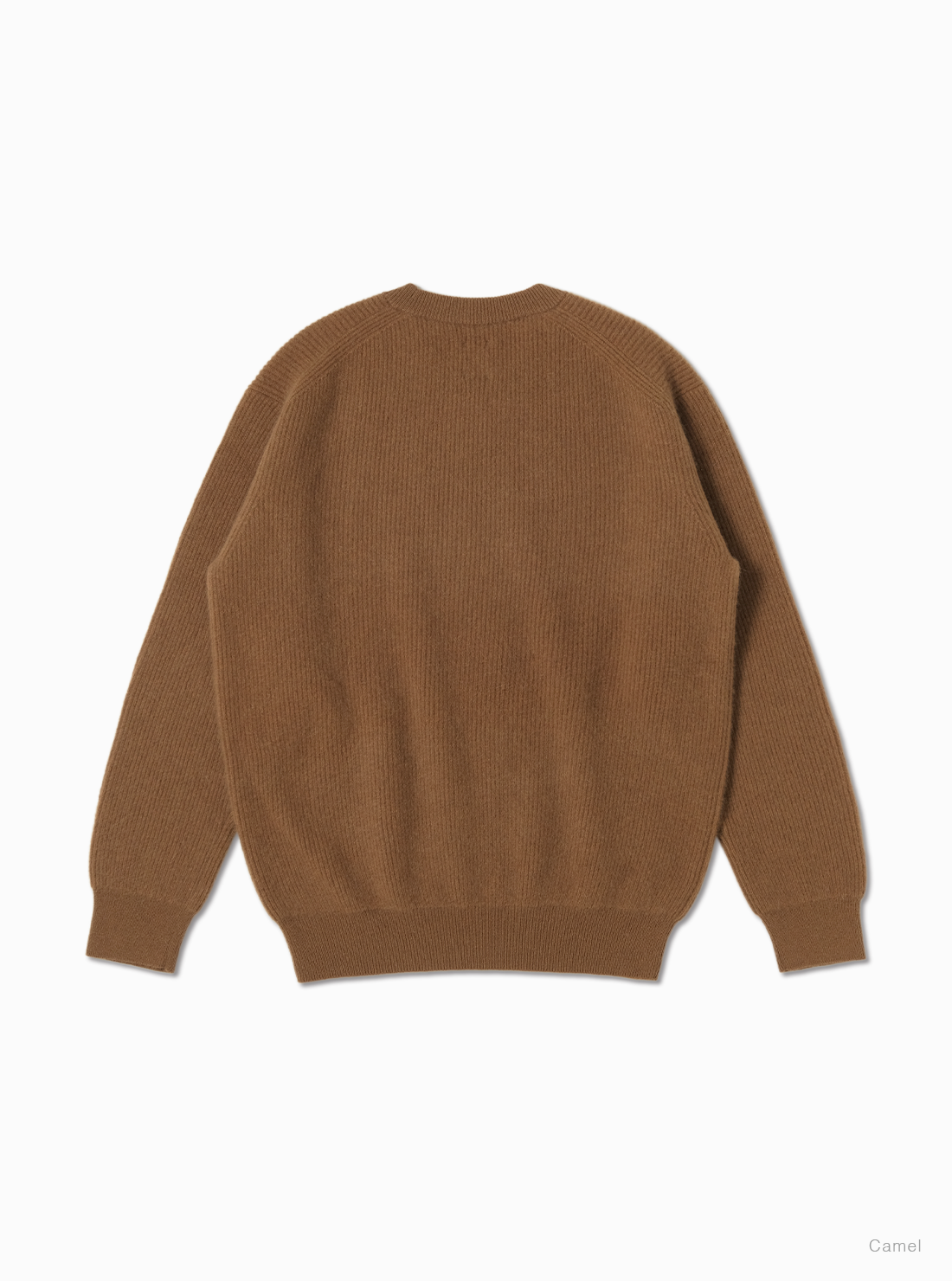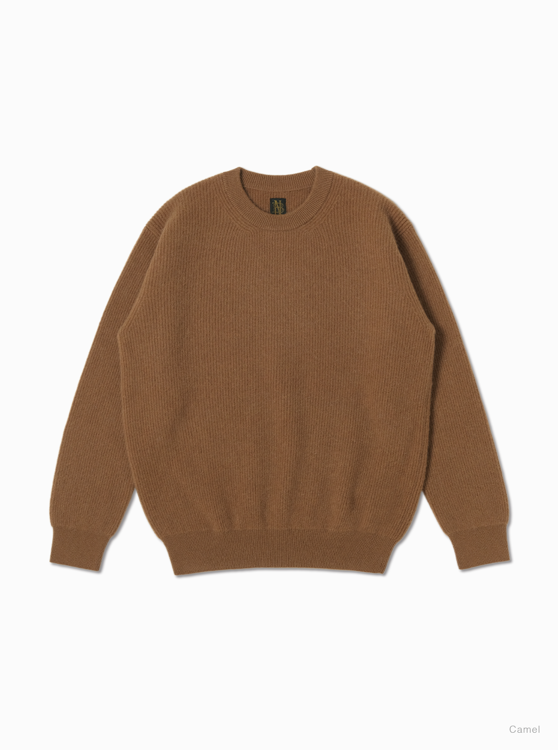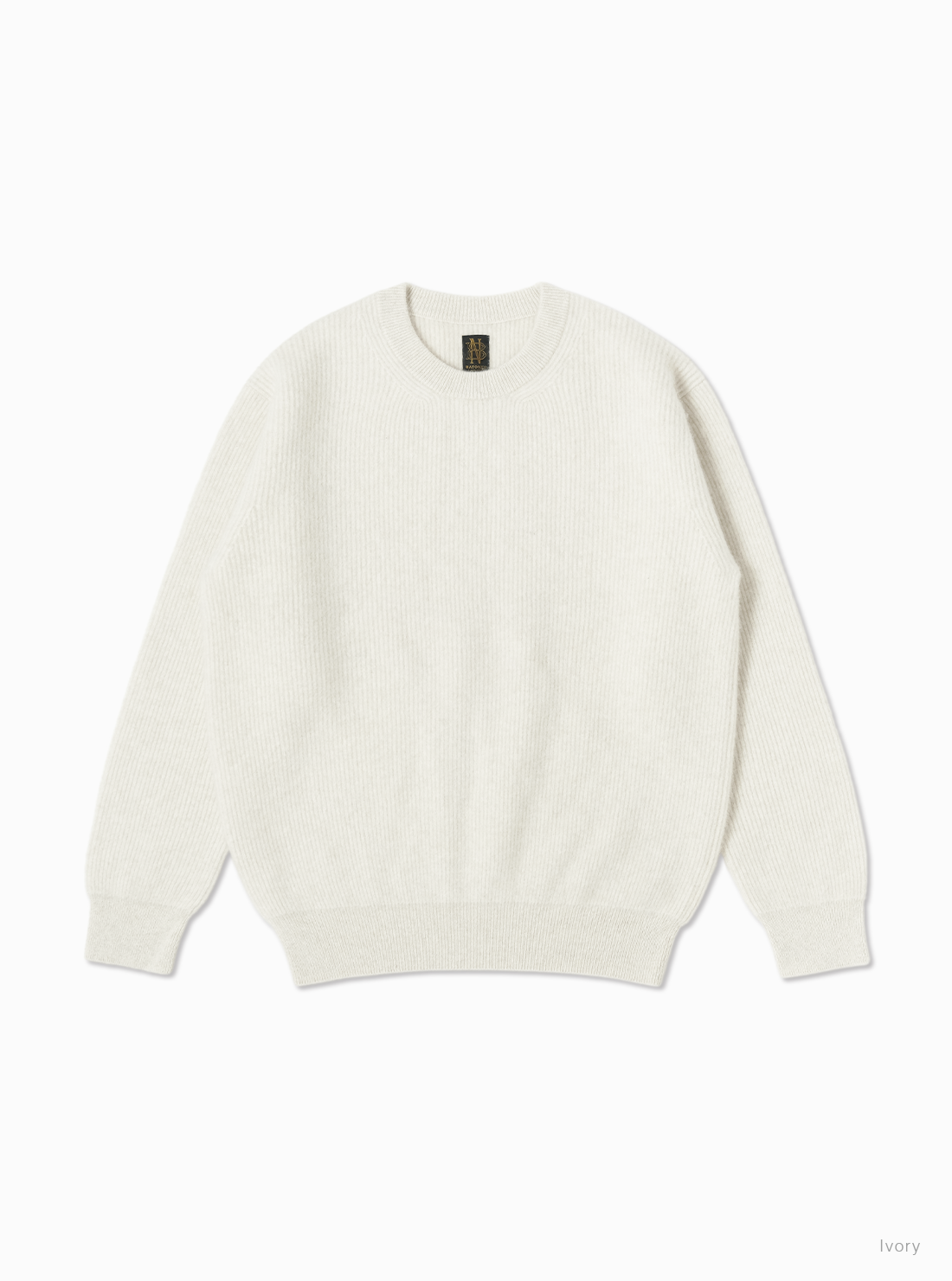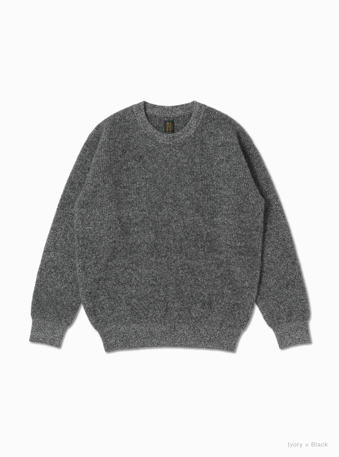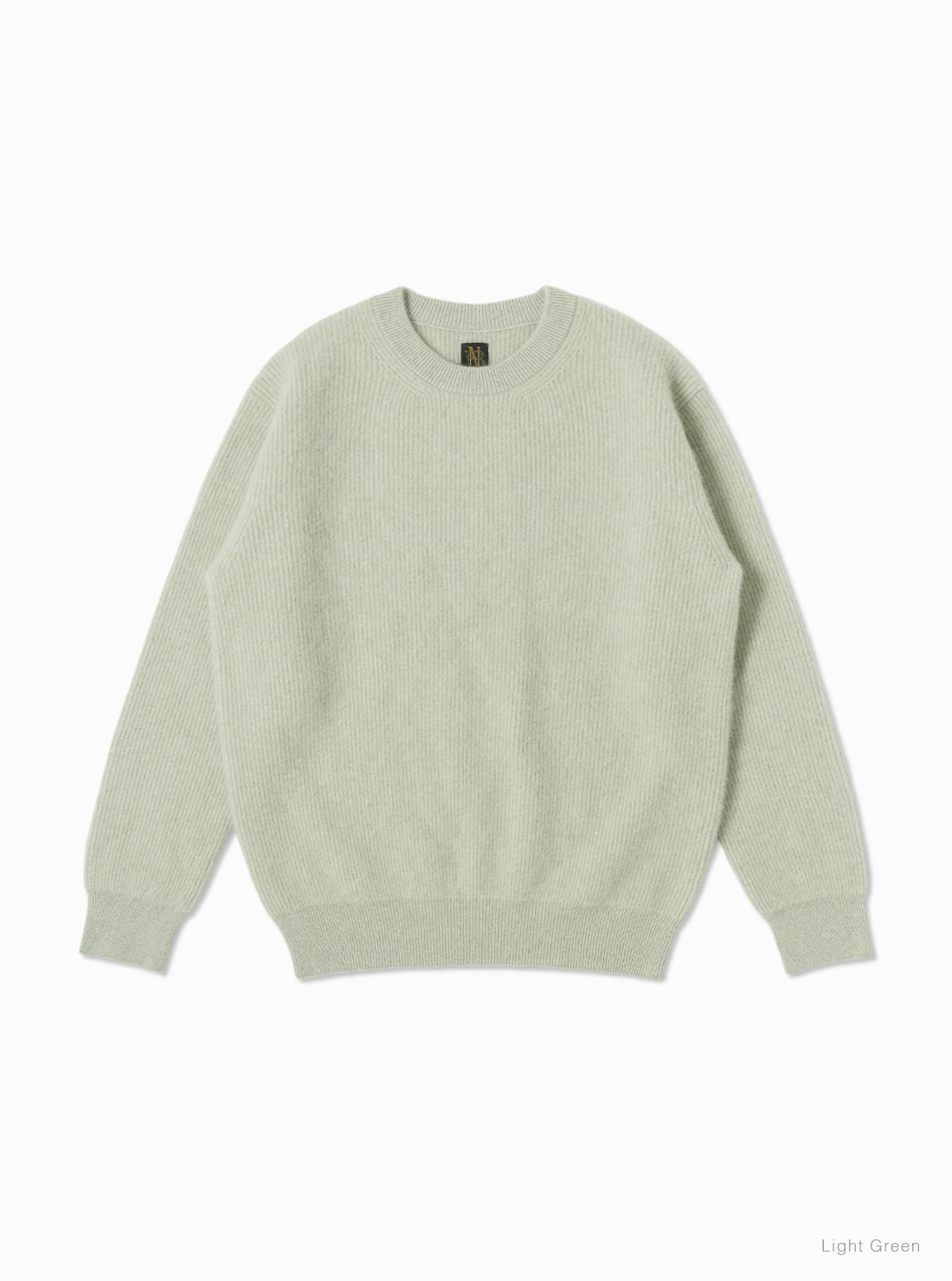 ほんのり青みがかった淡いグレーのブルーフォックスと、カシミヤの主要産地の一つとして知られるアルランシャン産の、ふくらみ豊かなカシミヤを使用。これらを、相互の特徴を最大限に引き出す3:1の黄金比でブレンドし、丁寧に紡績しました。この素材ならではの、上質な起毛感、軽やかさ、そして滑らかな肌触りが特徴の商品。