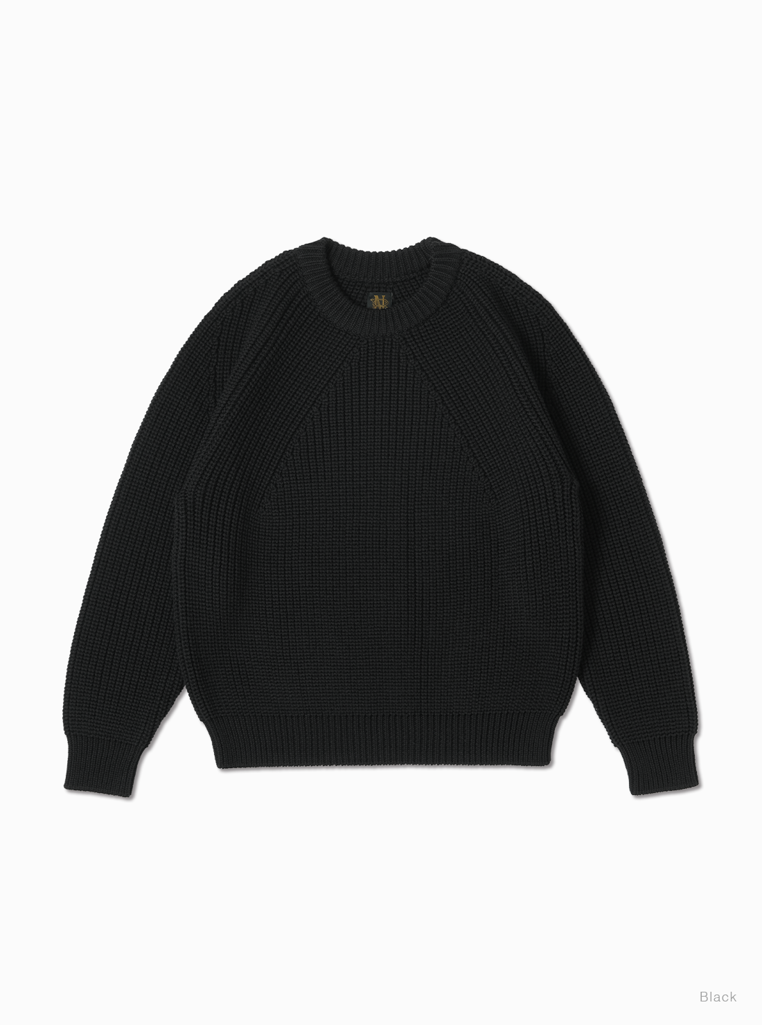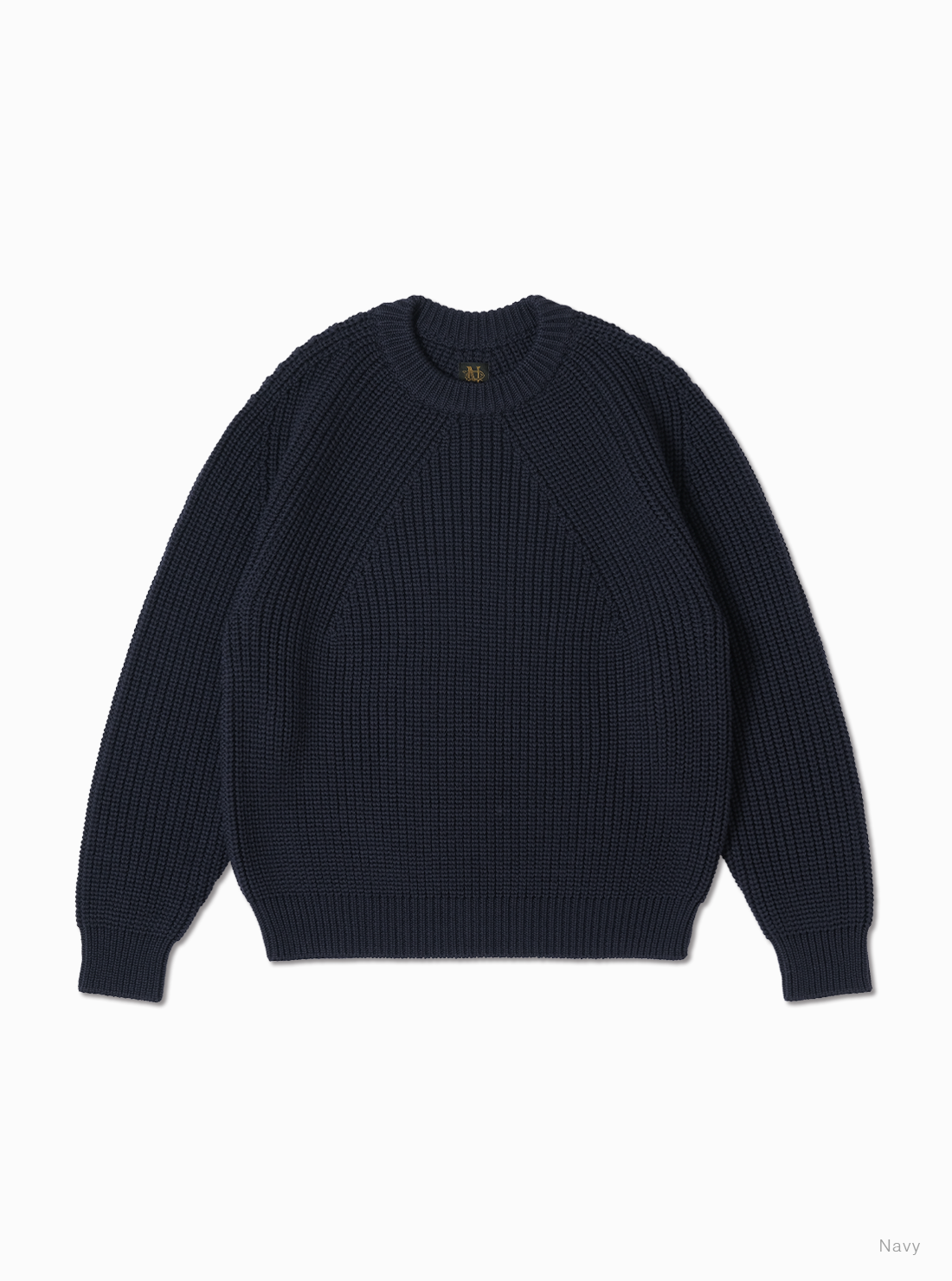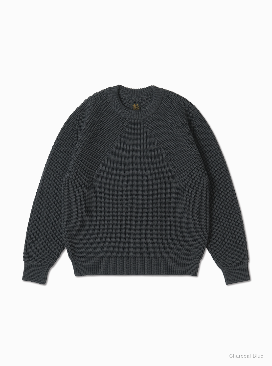 SIGNATUREシリーズの為に開発したSOLIDWOOLという糸を使用。ダレにくく、毛玉になりにくい商品で編み目の立体感が特徴。BATONERらしい象徴的な編み柄が際立つ商品。
