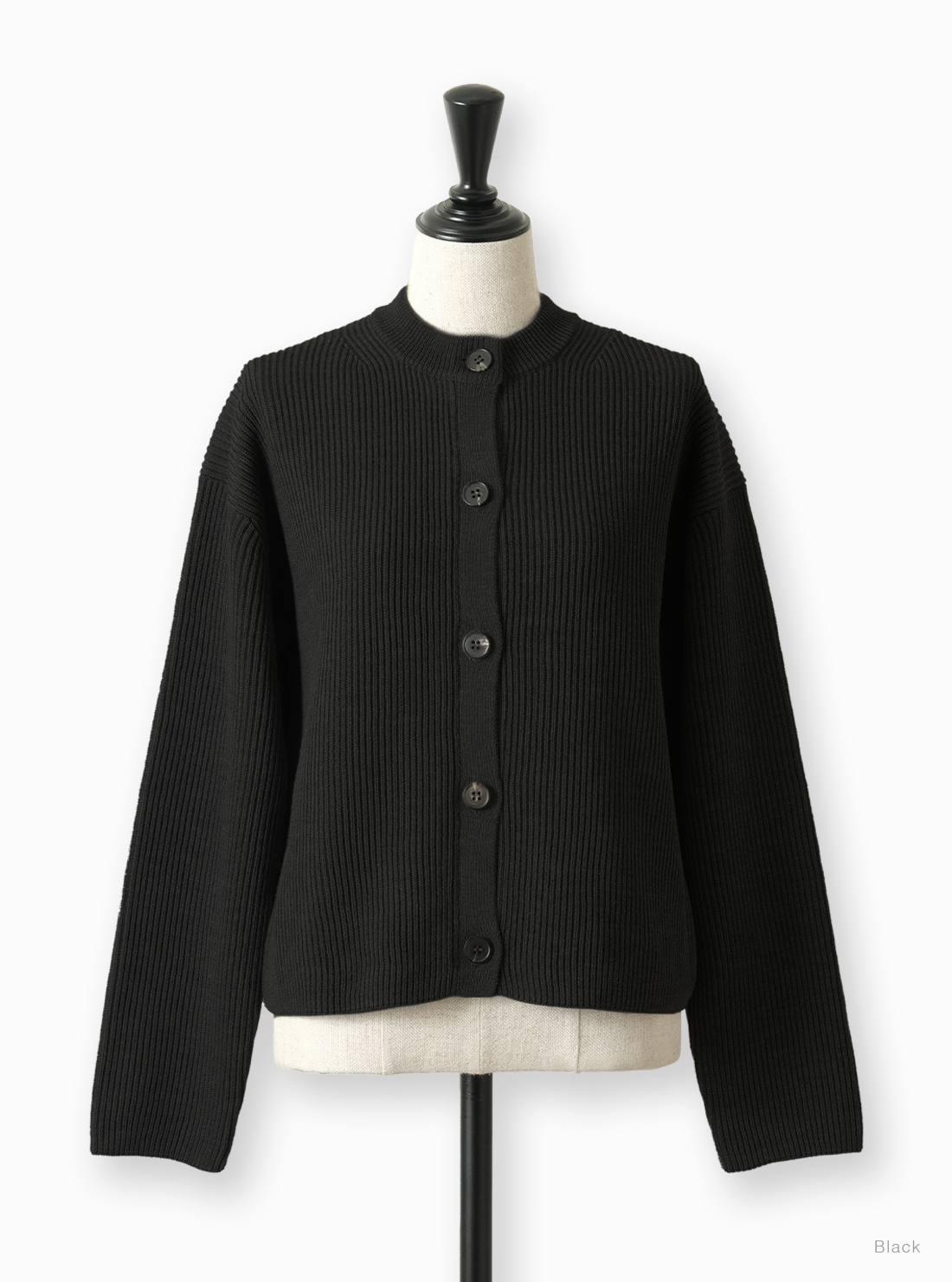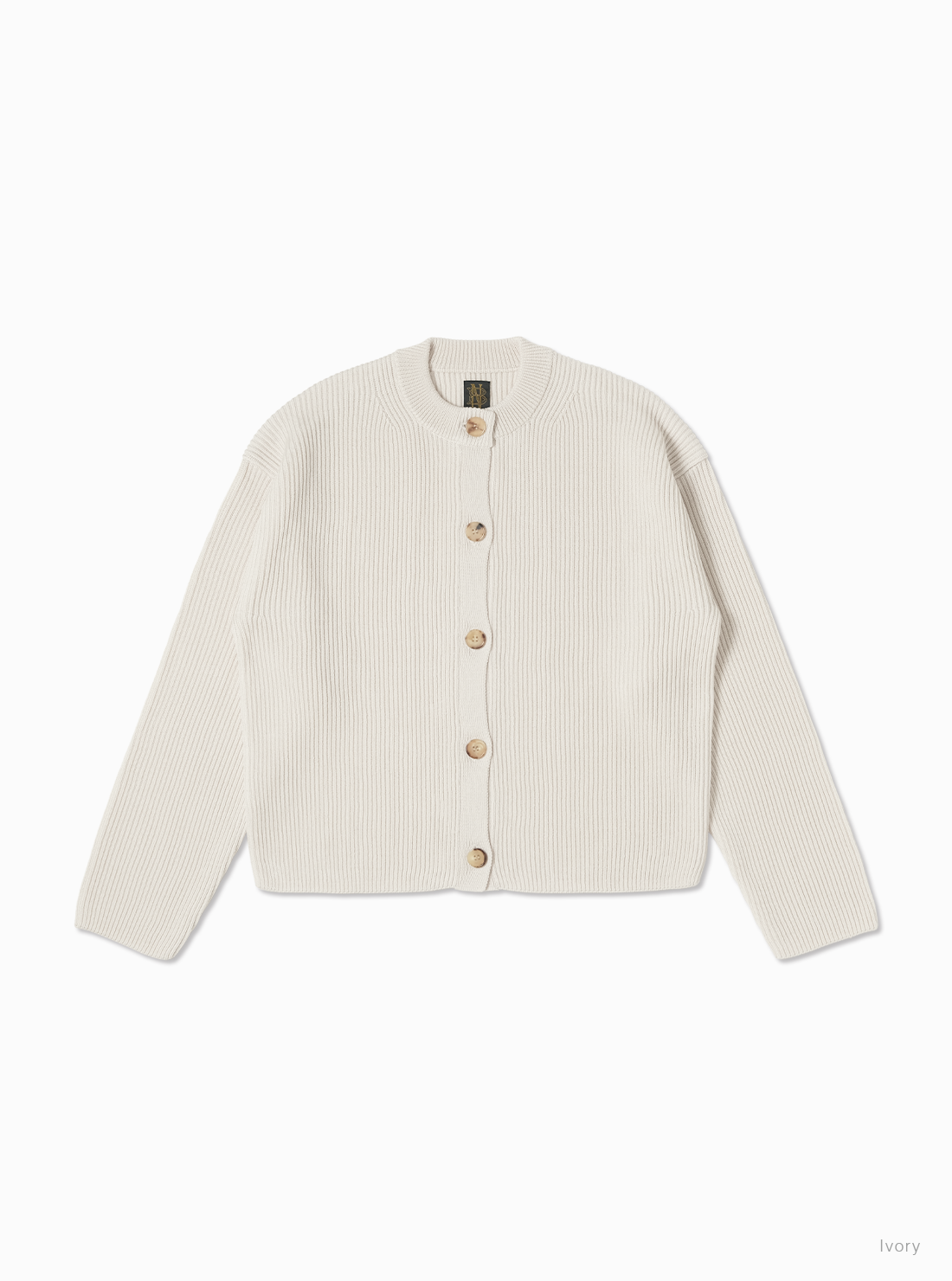 Women SOLID WOOL RIB CREW CARDIGAN
