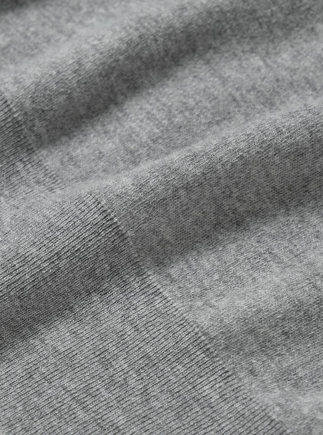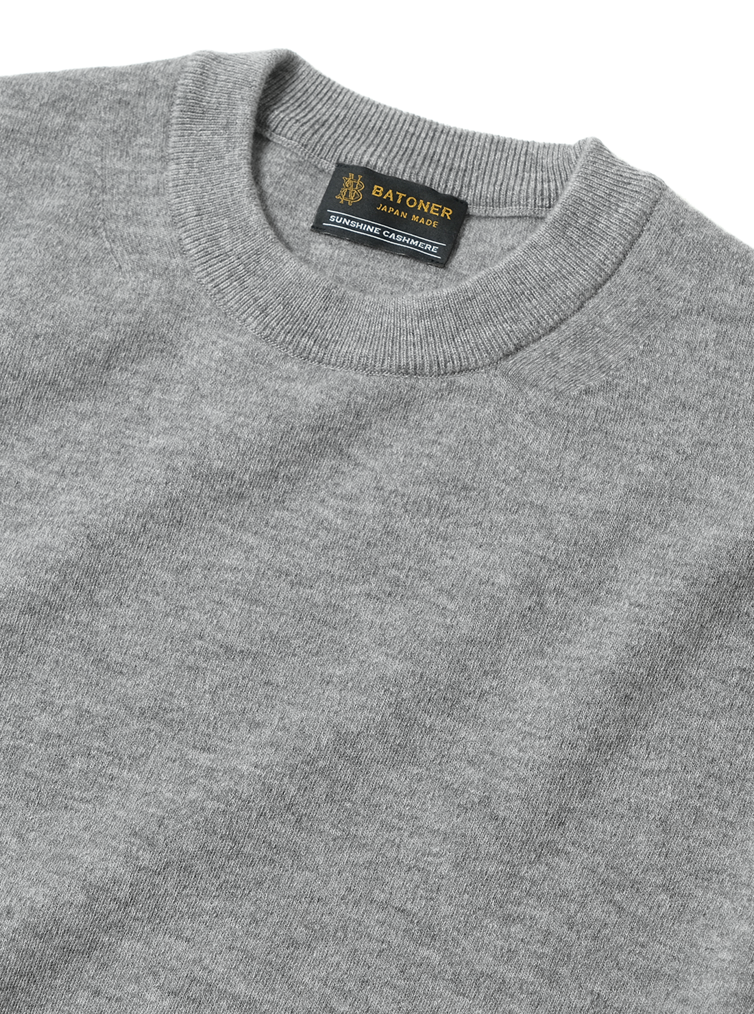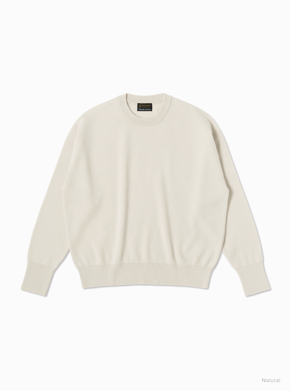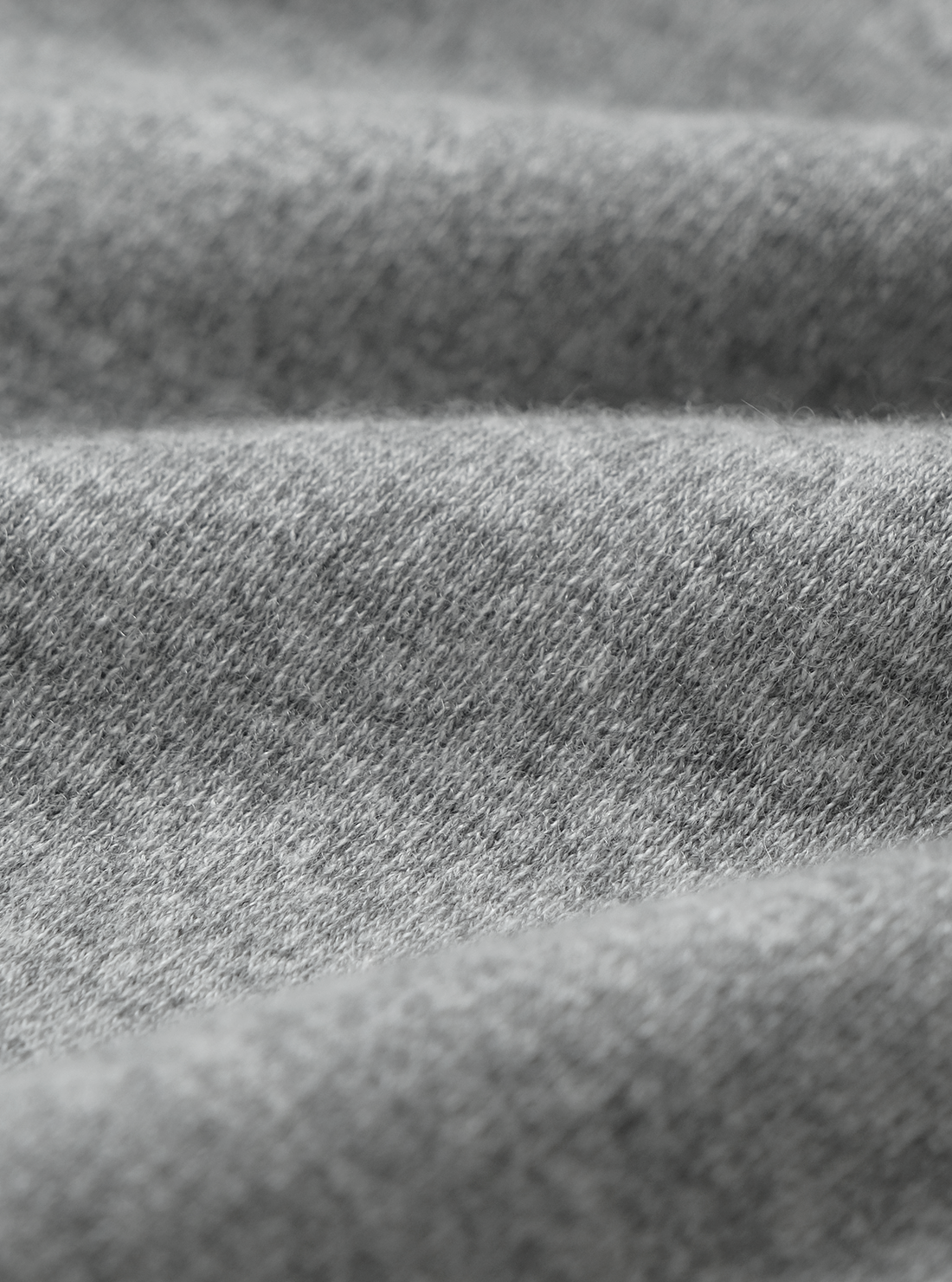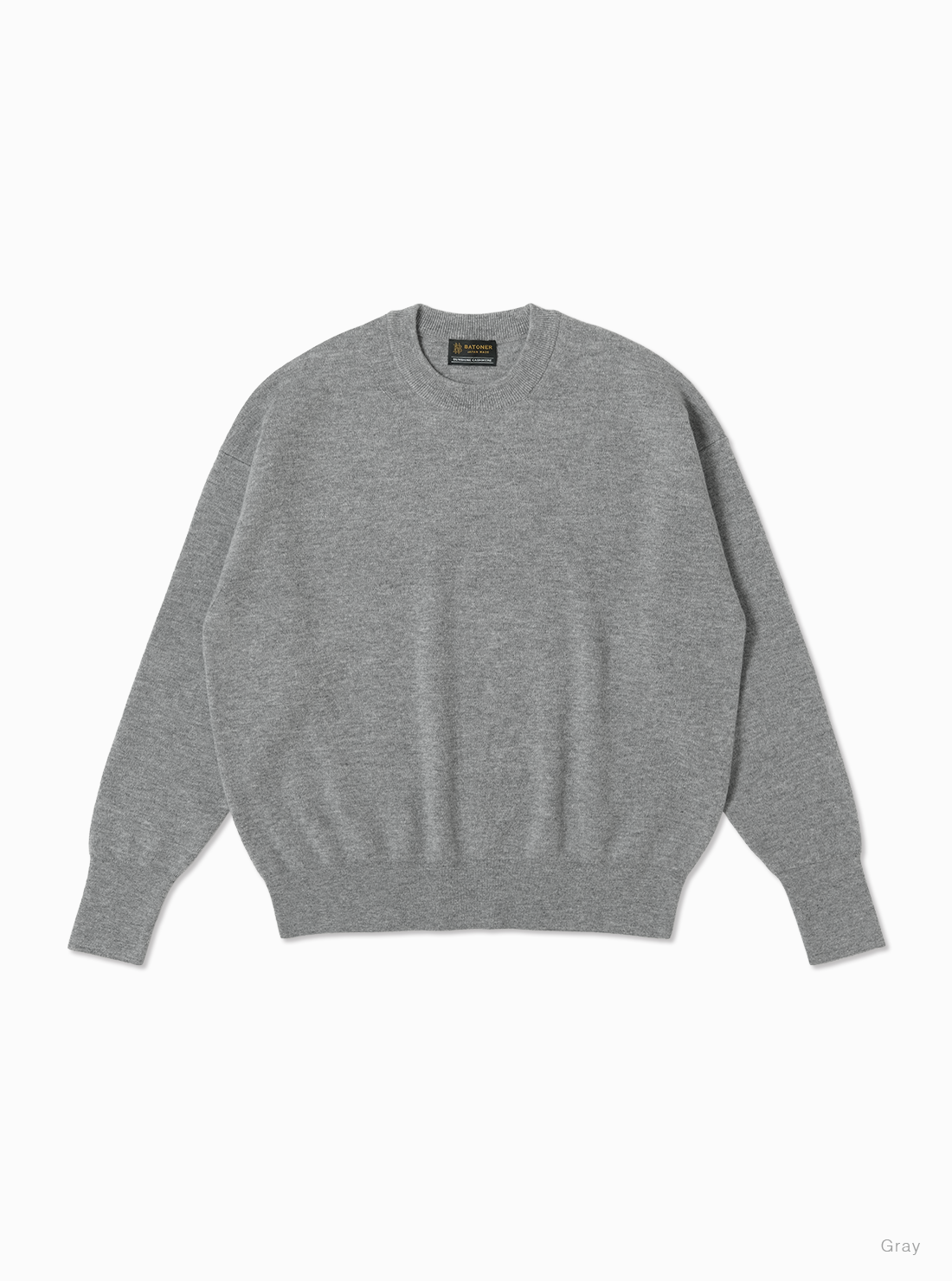 内モンゴル最東端に生息する希少なカシミヤヤギの繊維を使用。長時間の日照と肥沃な土地で育ったヤギから得られる、極細ながら強度のある原料。独自開発の極細番手カシミヤ糸を採用し、柔らかさだけでなく、ハリ・コシを備えたこれまでにないタッチを実現。極細糸を密に編み上げた32ゲージの高密度スムース編みにより、しなやかで弾力のある仕上がり。袖リブはやや長め。