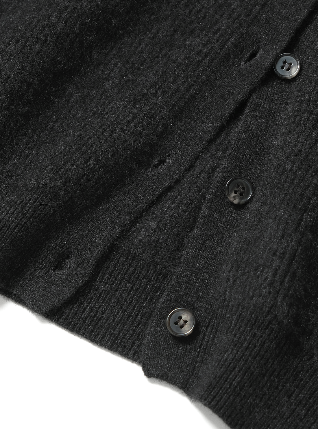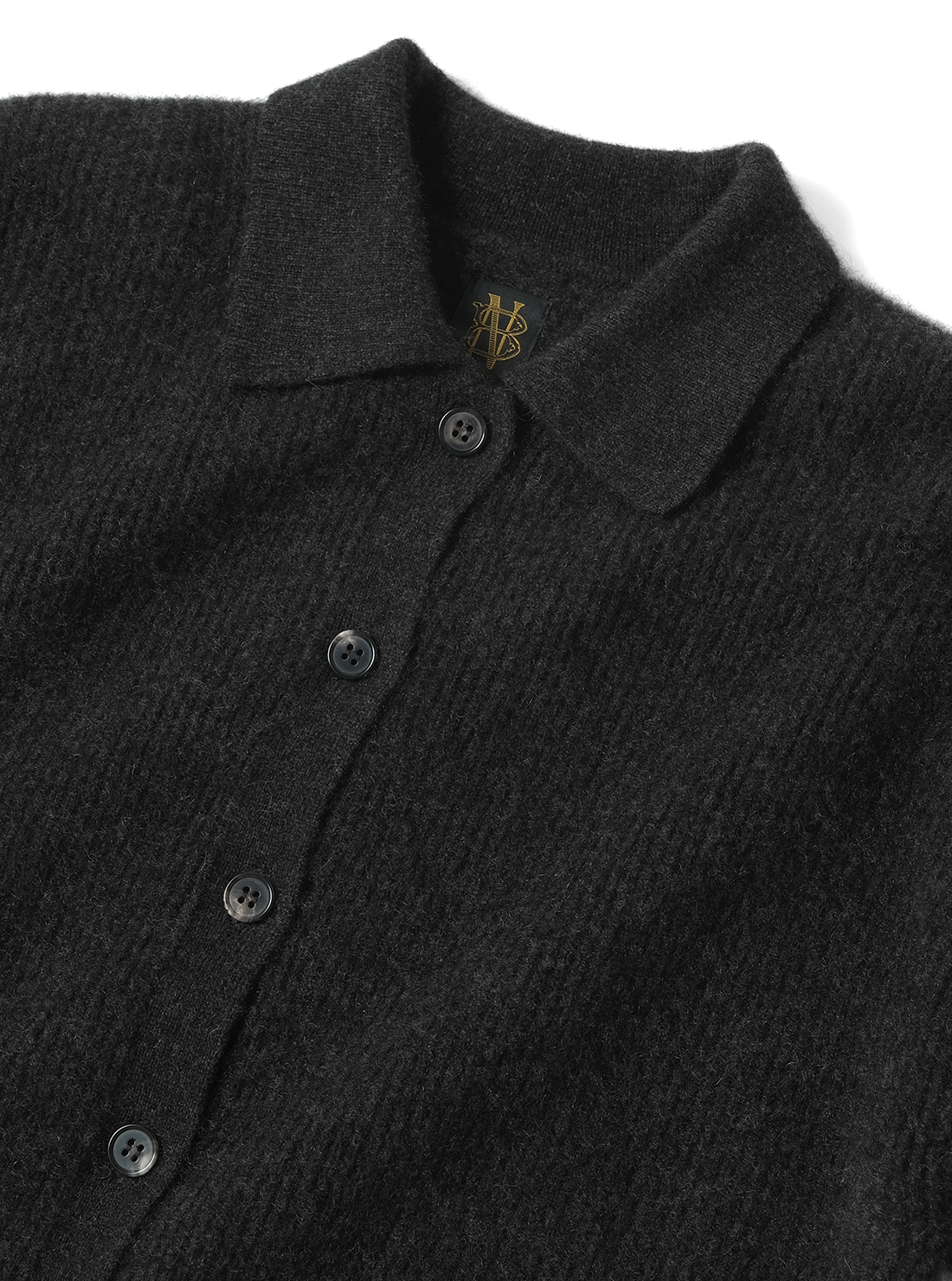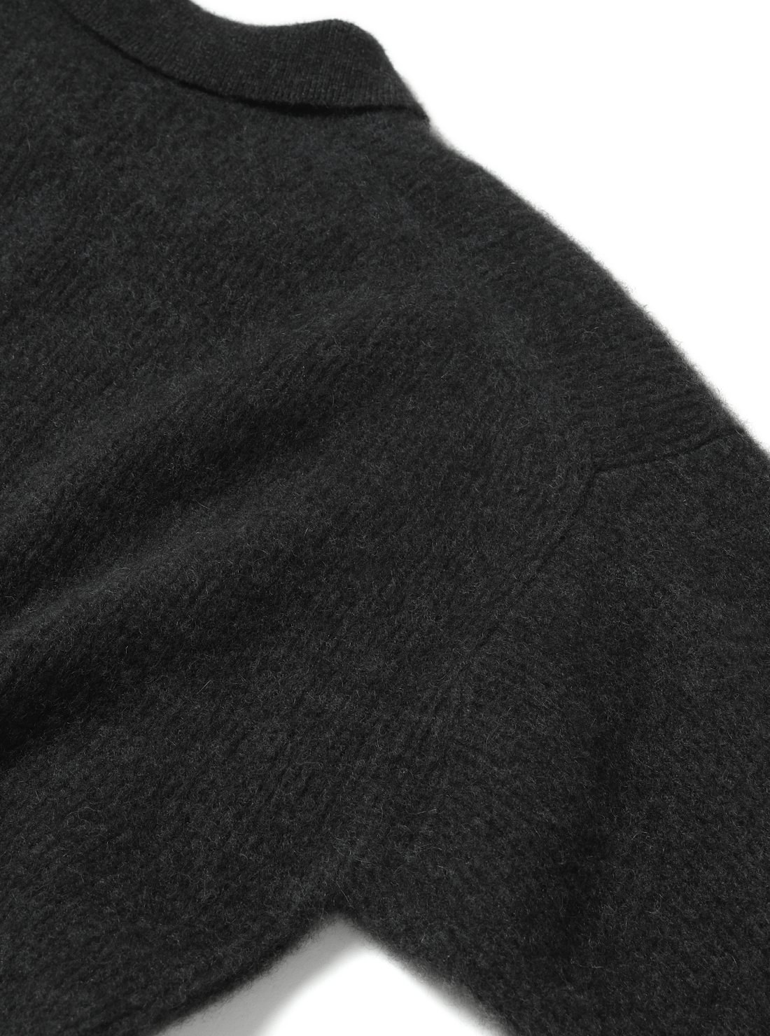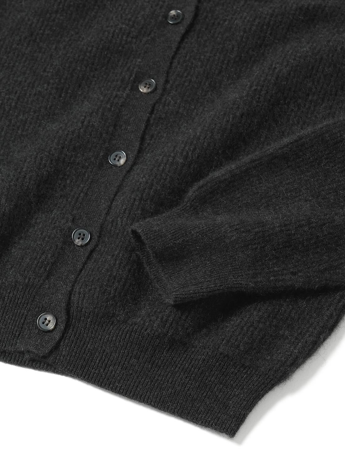 ほんのり青みがかった淡いグレーのブルーフォックスと、カシミヤの主要産地の一つとして知られるアルランシャン産の、ふくらみ豊かなカシミヤを使用。これらを、相互の特徴を最大限に引き出す3:1の黄金比でブレンドし、丁寧に紡績しました。この素材ならではの、上質な起毛感、軽やかさ、そして滑らかな肌触りが特徴の商品。